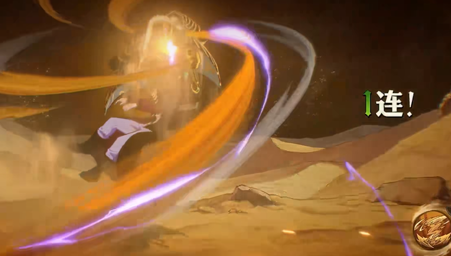 奥义技能包含多重形态:升空蓄力后重击地面,生成大范围沙暴并转化战场为沙漠地形;随元素能量强化达5次后,解锁沙暴自主移动机制,扩大清场覆盖;长按可吸附敌人至空中,随后倾泻沙暴打击;终结技为高速突进→瞬移穿刺,实现精准单体斩杀。