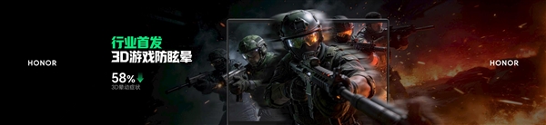 荣耀还宣称该屏幕行业首发3D游戏防眩晕技术,可减少58%晕动症状。