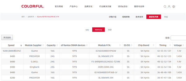经官方测试,iGame影Ⅱ内存已确认出现在以下3款旗舰主板的内存QVL清单中: