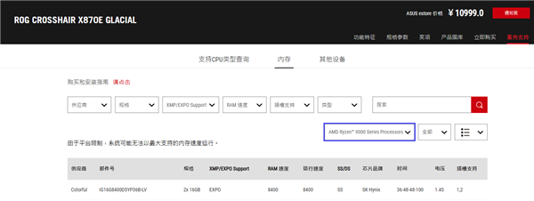 ROG CROSSHAIR X870E GLACIAL官方内存QVL