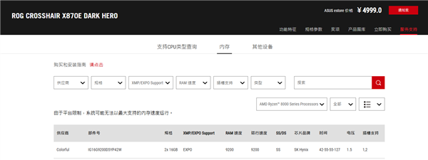 ROG CROSSHAIR X870E DARK HERO官方内存QVL