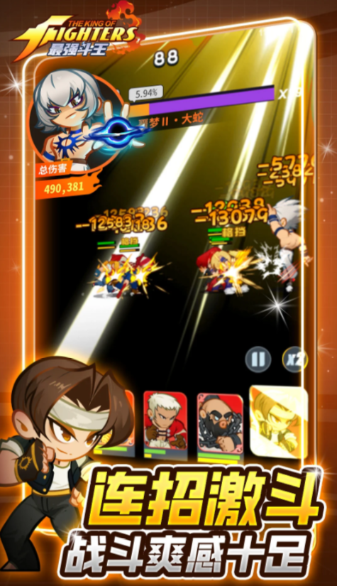 最强斗王是拳皇正版授权的q版格斗游戏,喜欢格斗手游的玩家可以去豌豆荚下载,已经上线了。为了能让玩家更有代入感,游戏里会还原大量经典的格斗角色,除了外观之外,角色的技能也会贴合原作,成员可以在原汁原味的q版场景中,感受趣味的格斗对战,每次挑战都需要选定不同的角色,通过技能释放攻击对手,成为街头格斗的获胜者,游戏里每个角色都会有对应的能力数值,所有的格斗家后期还能深度养成,即便是品质比较低的角色,也能在玩家的培养之下逆袭。