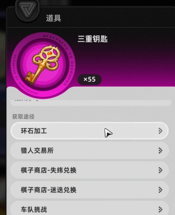 玩家在参与的时候,需要消耗三重钥匙来进行抽奖,每抽一次肯定会给一枚弧盘。三重钥匙其实并不是那么容易弄的,它属于稀缺的资源,主要靠商店兑换,在这样的情况下,玩家需要在环石或者是集市货币来进行更换,在游戏开服的时候登录也会送一点,但是这个数量是特别少的,对于玩家来说,想要抽卡就需要自己去攒资源,每天蹲在商店进行兑换。另外,车队的挑战、棋子商店,迷迭的兑换等等,也能够获得一些。