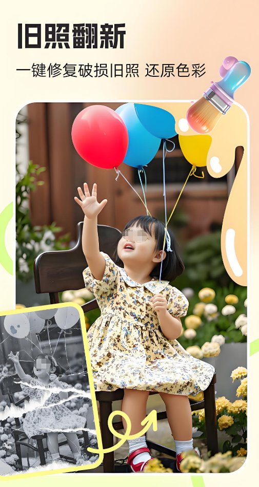 在通用图像编辑能力基础上强化历史影像专项修复引擎,特别适配低分辨率、高压缩、强噪点的老照片场景。边缘修复算法能精准识别发丝、衣领、窗框等精细边界,实现亚像素级平滑过渡;AI美化系统同步优化肤色白平衡与环境光反射,使修复结果兼具真实性与视觉舒适度。