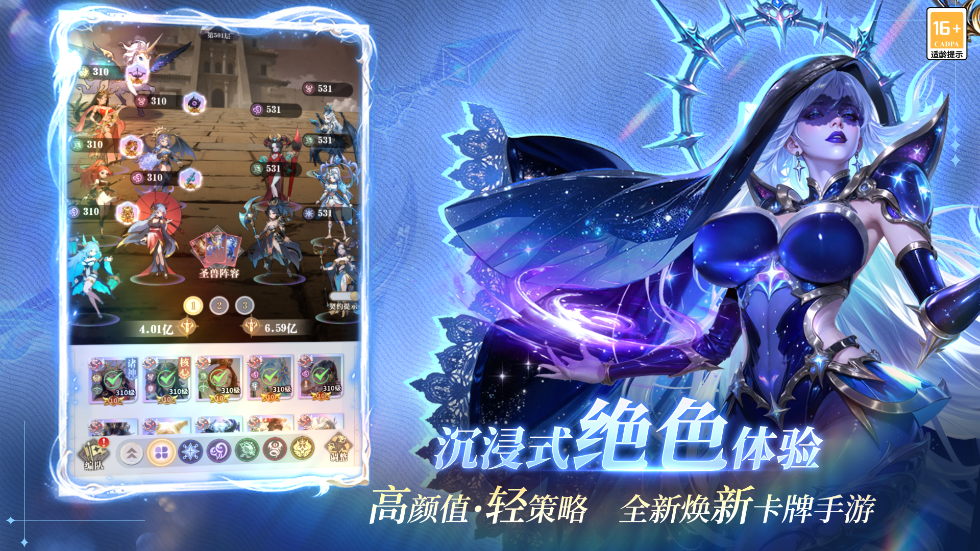 游戏摒弃传统卡牌复杂烧脑玩法,采用四大阵营 + 五大职业轻策略体系,圣盾、战士、奥术、辅助、迅捷职业克制清晰易懂,无需深度思考即可搭配强势阵容。游戏支持90% 智能离线挂机,离线持续产出养成资源,碎片时间也能轻松成长,真正解放双手、解压躺赢。同时上线推关即送1000 抽福利,稀有女神零门槛获取,快速组建心仪女神战队。