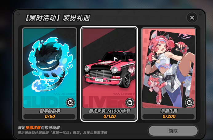 为保障玩家长期参与体验,活动内置明确保底规则:累计掷骰达指定次数后,系统将自动开放“三选一”直选权限,允许玩家从当前池内任一未拥有的角色皮肤、载具皮肤或滑翔翼皮肤中自主领取。该数值已在活动界面公示,玩家可随时查阅实时进度,无需额外记忆或计算。