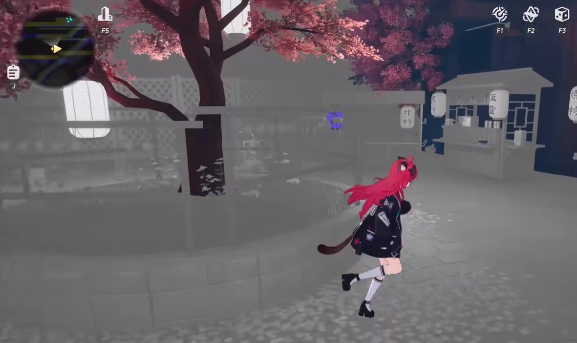 中间区域为任务关键节点,操作具备严格顺序依赖性。场景内含一棵树与小摊上的灯笼,二者存在色彩联动逻辑:第一步,将树调整为粉色;第二步,将灯笼设为红色,此时树色将自动转为绿色;第三步,再次将树调回粉色,随后对灯笼执行两次互动操作——至此,通往终点的道路完全解锁,任务宣告完成。