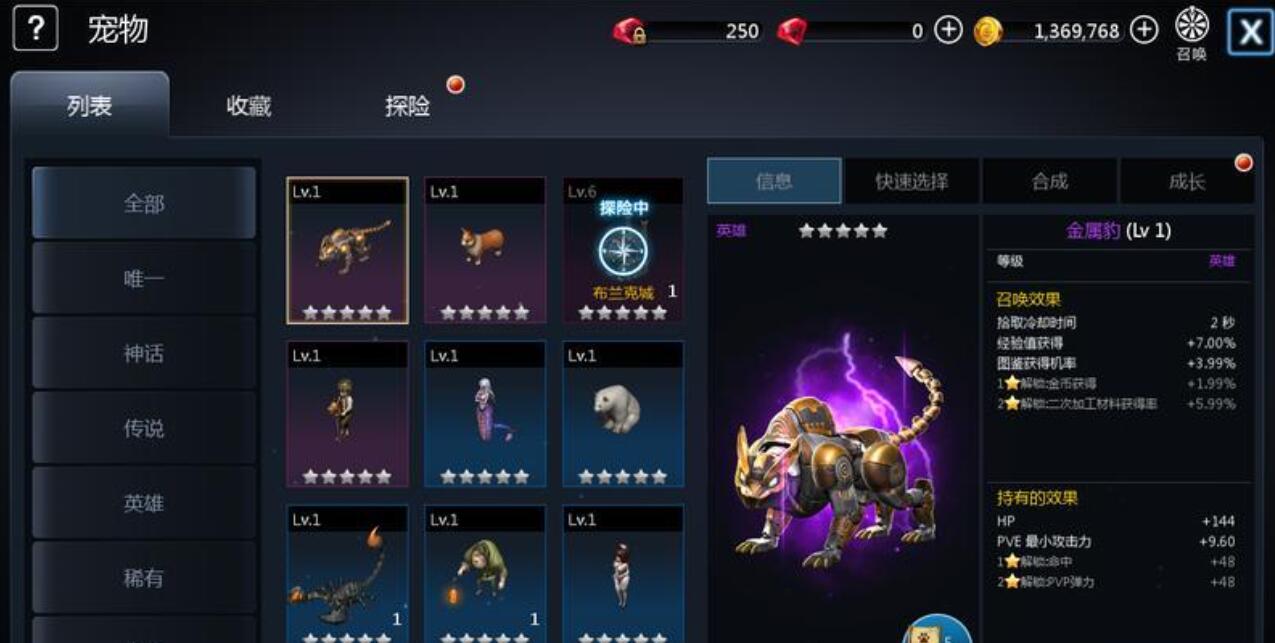 宠物的日常养成并不繁琐,快捷栏自由切换。低阶宠物可以合成高阶形态,抽到重复多余的宠物全部用来喂养核心的主力,升级就可以。