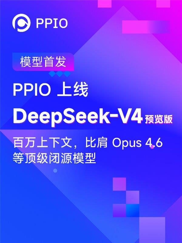 PPIO首批上线DeepSeek-V4预览版 1M超长上下文能力开箱即用