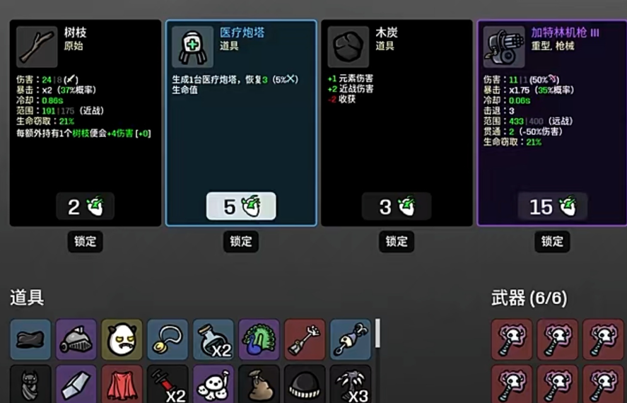 第1至第5波属于奠基期。此时若遇低价回血类道具(如小红瓶、再生药剂等),务必第一时间购入。前期血量越充足,可支配的“生命货币”越多,容错空间越大。武器推荐电击枪与幽魂节杖组合:前者提供稳定范围伤害与清怪效率,后者附带吸血效果,形成良性循环,显著降低早期暴毙概率。