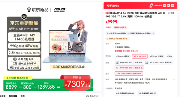 限定华硕a豆14 Air机身A面拥有豆叮与MARZO BEAR联名图案,基于镭雕工艺将MARZO BEAR的美好能量注入细节肌理,定格跨次元联盟的治愈时刻,让笔记本电脑既是生产力工具,更是随身的时尚单品。不止好看,它还凭借硬核性能,重塑职场生活,助力高能高效时刻随行,990g超轻薄机身配备AMD锐龙AI 9 H 465处理器,搭配华硕冰锋散热架构,突破轻薄本性能边界,实现轻量化机身下至高45W强悍性能释放,承包学习、工作与AIGC创作等多个用机场景;拥有2.8K 120Hz 1100nits OLED华硕好屏,以卓越的色彩表现力缔造至臻视界;内置的70Wh大电池,提供约29.6小时1080P本地视频播放、18.8小时PCMark 10现代办公续航表现,随时随地高能在线。