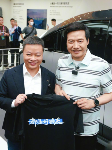 值得一提的是,除王传福专属款式外,雷军本次送出的定制 T 恤各有巧思:赠予理想汽车李想的是 “听我讲完”,送给小鹏汽车何小鹏的为 “都是好鹏友”,给到蔚来李斌的则是 “一起加电”。