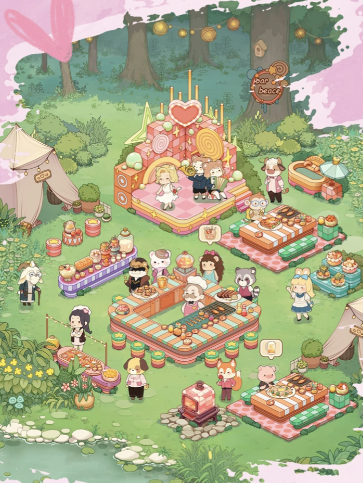 视觉呈现方面,《朵拉的露营餐车》采用高饱和度Q萌卡通美术体系,角色设计圆润亲切,场景刻画细腻柔和,从晨雾缭绕的林间小径到浪花轻拍的滨海营地,每一帧画面均强调沉浸式放松体验。配合低频律动的原创BGM,整体氛围营造精准契合“慢生活”核心调性,有效缓解玩家日常压力。
