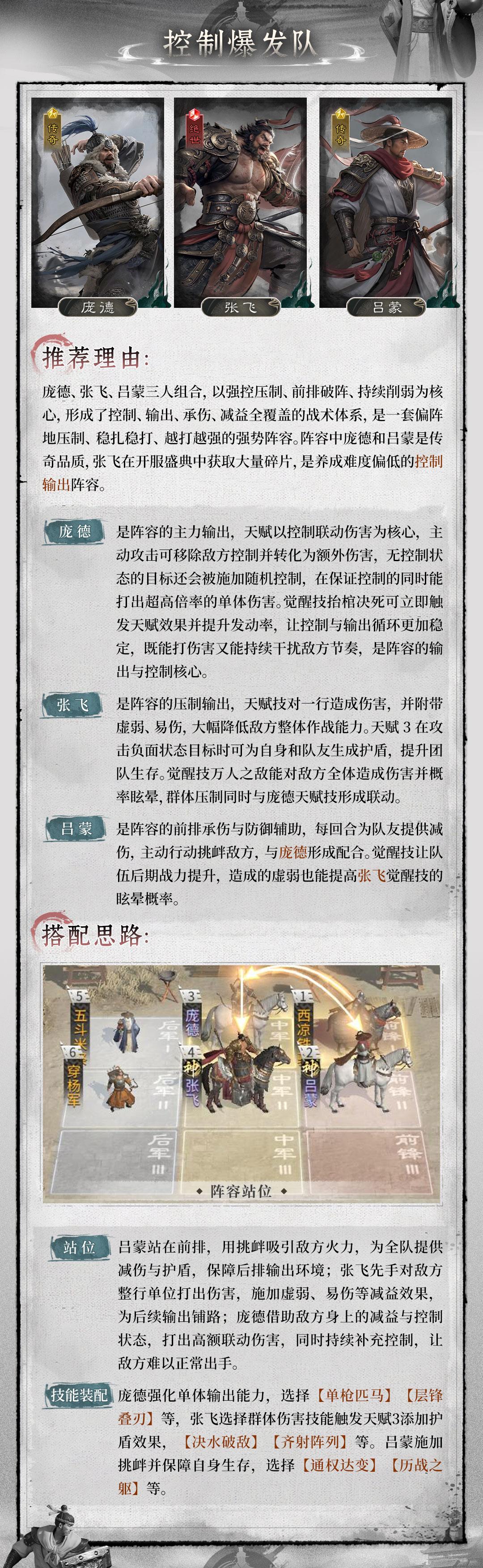 前两期的阵容推荐均以之前版本中出现过的老英雄为主,本期将围绕公测版本的新英雄,为各位主公推荐三套阵容,希望能为大家的配队打开新的思路。