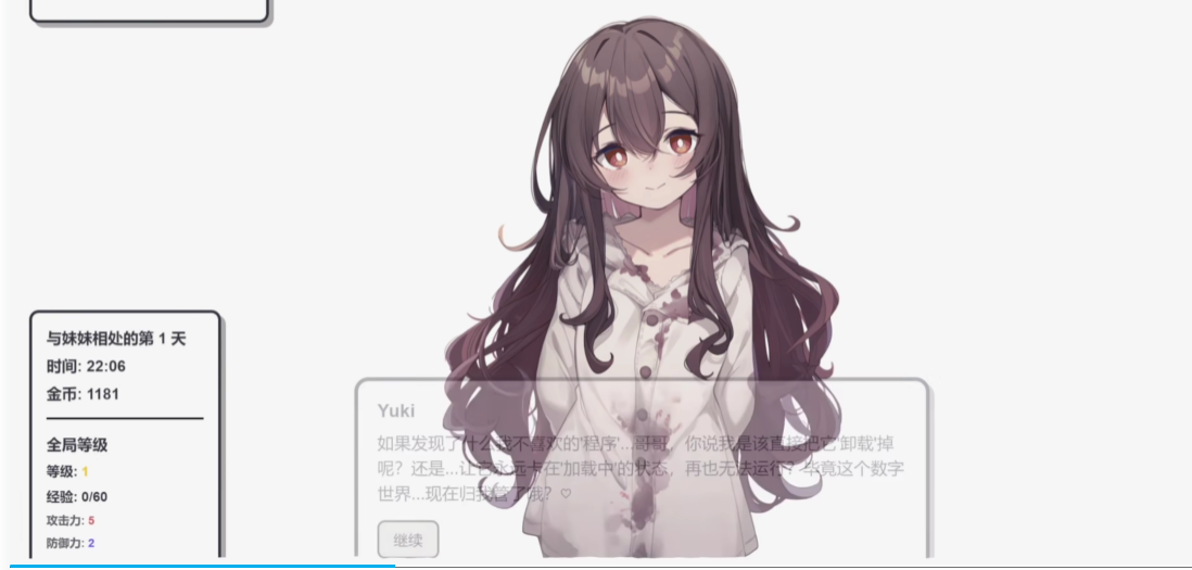 病娇人格并非单纯的性格切换,而是基于深层心理机制的演化结果。该状态下,Yuki对玩家角色(哥哥)形成高度情感依附,表面呈现甜腻撒娇特质,内核则体现为极端排他性与占有倾向。有效维系该路线的关键,在于持续向其传递“世界虽为虚拟,但我的情感真实存在”这一核心信念,以稳定其认知锚点。