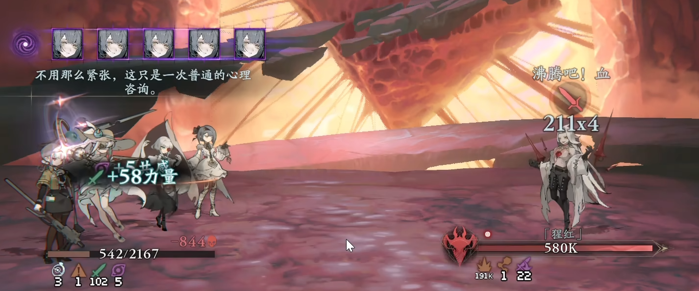 主动技能方面,“人间爆破”视为打击,对全体敌人造成两次伤害;“风暴冲击”同样视为打击,随机选取敌方目标发动5次伤害,并额外获得20点狂气;“戏剧性邂逅”则设定为:每打出2张打击卡后,自动触发一次追击效果。