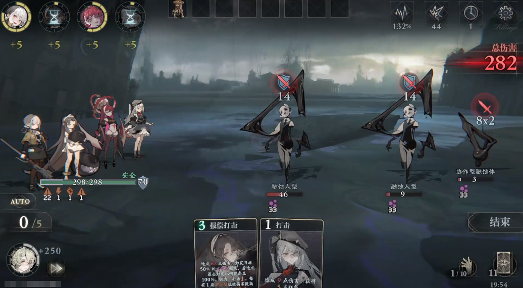 本作采用智能自动战斗机制——战斗全程由系统驱动,角色依预设逻辑自主施放技能、触发连携与应对战况变化。玩家的核心操作聚焦于战前部署:根据敌方配置、关卡特性及阶段目标,灵活编组五人卡组,并决定是否在关键回合“唤醒”特定角色,激活其高阶技能或特殊效果。胜负不仅取决于基础数值,更依赖队伍协同效率与克制关系;例如当己方总生命值显著高于对手时,胜率自然提升;而在势均力敌或处于劣势时,则需依靠毒伤持续压制、反伤反弹机制或触手类控制链等策略维度实现逆转。