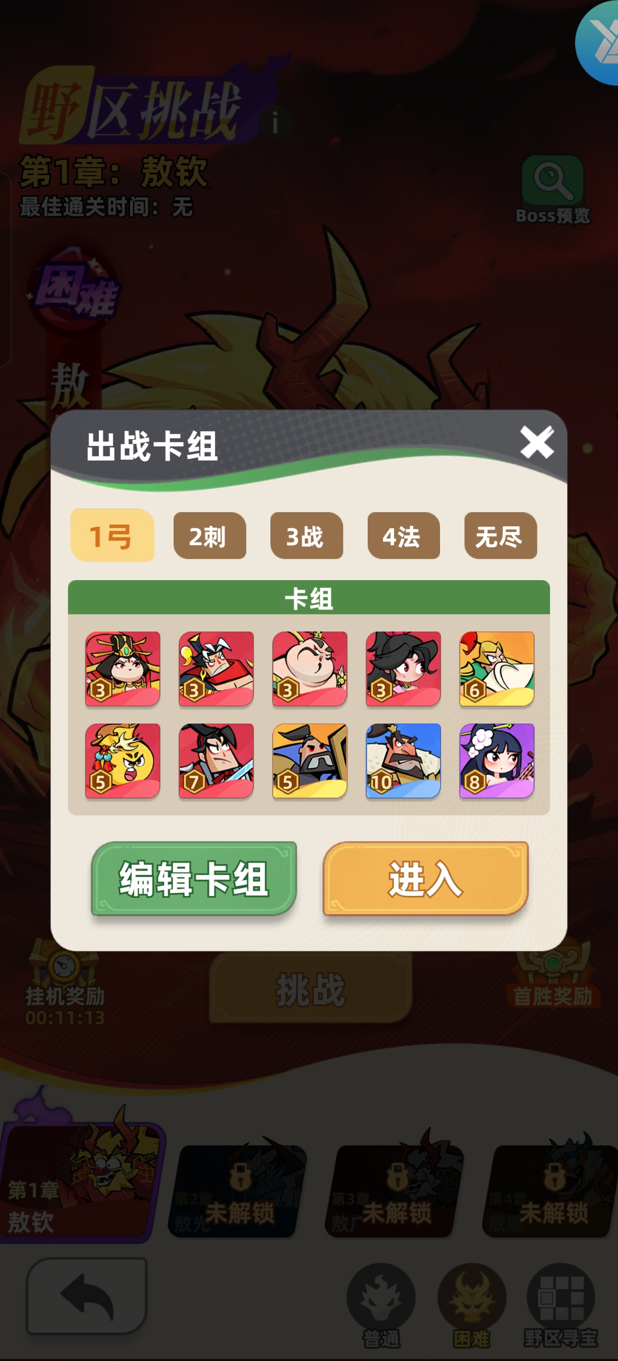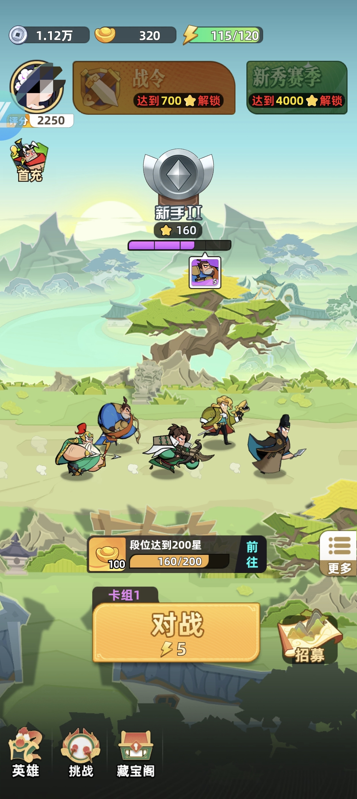 玩家可以预约下载畅玩抽卡,在新手时期抽卡的时候,开局的第一次10连必然会得到红将元芳,通过挑战特定的任务可赠送收获孟获,这两个英雄角色玩家可以和马可波罗,刘备以及黄忠组建成一个射手阵容进行推图,先行挑战难度较低的关卡任务,推动游戏的进程,游戏的前期建议玩家不要频繁的抽卡,最好的方法是通过打野和挑战任务得到自行挑选的卡包,这样既能积累资源,又有机会得到英雄。