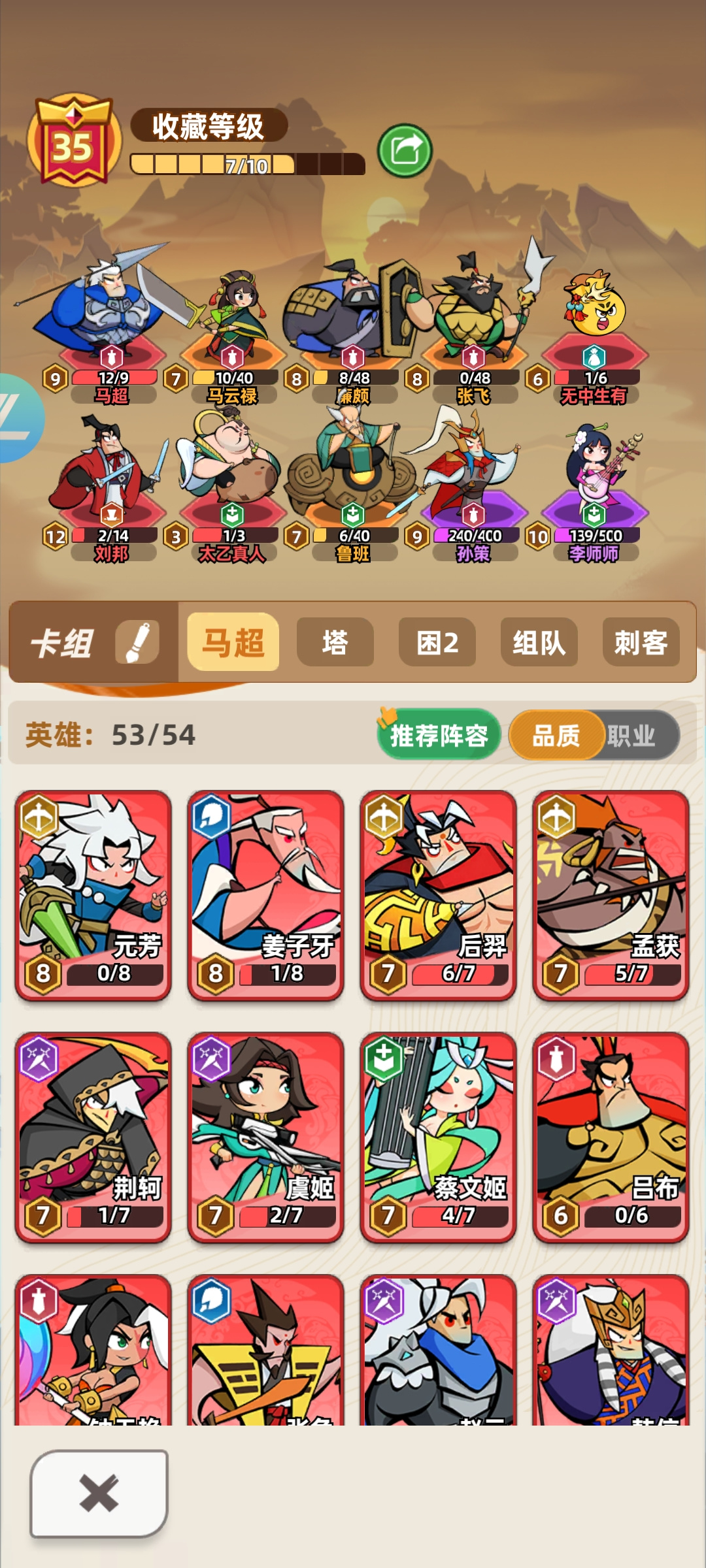 玩家可以依据抽卡所得的英雄自由的调整改变所搭配的阵容,比如通过抽卡得到虞姬,可以偏向于刺客流的阵容搭配,抽到庄周这个英雄,可以尝试着搭配出法师体系阵容,依据抽到不同的英雄类型属性和技能灵活的搭配,需要特别注意的是英雄和英雄之间也存有角色星级和羁绊系统,建议先行培养性价比高的紫色卡片上的英雄,比如射手和坦克类型的角色,是阵容搭配当中极其重要的技能英雄。