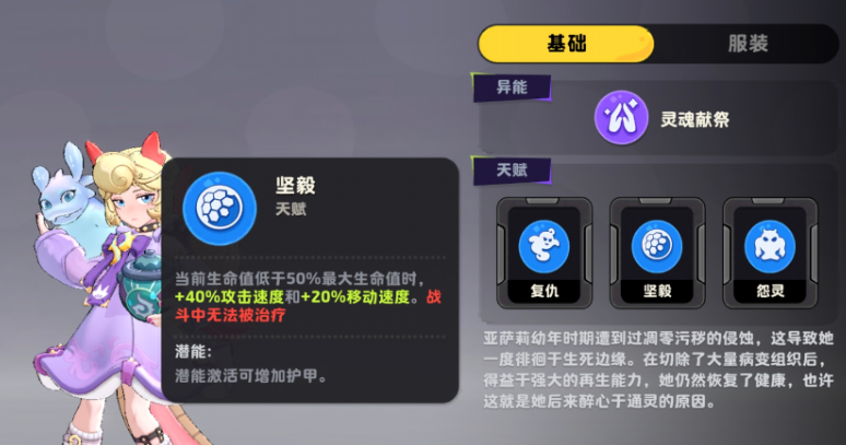 “坚毅”作为备选天赋,侧重生存向爆发转化:当生命值低于50%时,提升40%攻速与20%移速,但同步进入“无法被治疗”状态。该效果需谨慎使用,建议在护甲增益已通过潜能激活、且具备一定承伤冗余时启用,避免因治疗缺失导致意外退场。