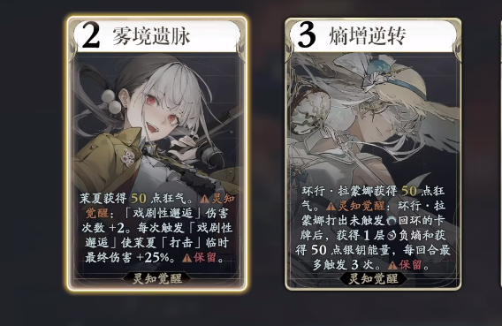 当“龙卷风世界大崩溃”状态被激活后,茉夏将获得一次额外伤害增益,并永久获得死亡抵抗效果;“风暴冲击”的算力消耗归零;首次释放该指令即令全体敌方单位陷入昏迷,丧失当回合行动权。“雾境遗脉”作为其灵知觉醒技能,初始即赋予50点狂气,并在对战中额外触发两次;此后每次使用打击卡,均会对目标附加25%的临时最终伤害加成。