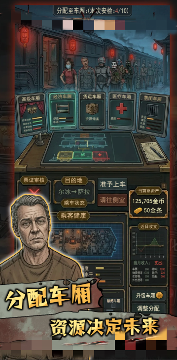 全球爆发未知僵尸病毒后,地表文明几近崩塌。一列钢铁列车成为人类最后的流动庇护所。玩家将担任列车指挥官,肩负筛选乘客、阻断感染、分配物资、维系秩序等多重职责。每一次开门决定,都可能影响整节车厢的存亡——误放感染者将触发连锁感染;资源分配失衡则诱发幸存者冲突;密闭空间中的压抑氛围持续考验决策者的心理韧性与伦理判断力。