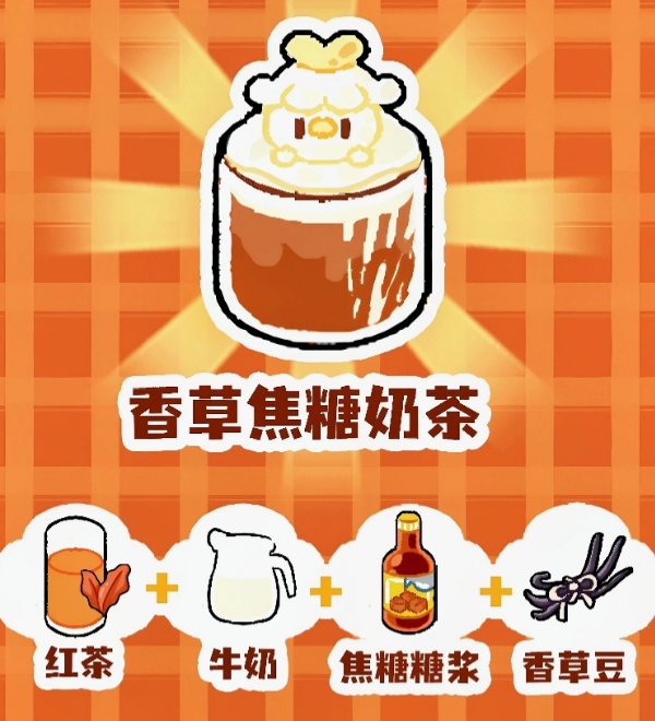 第三款为香草焦糖奶茶,专用于冬季场景,配方含红茶、牛奶、焦糖糖浆与香草豆;口感醇厚绵密,已被确认可有效提升多名NPC的好感度,是冬季刷取关系值的高效选择。
