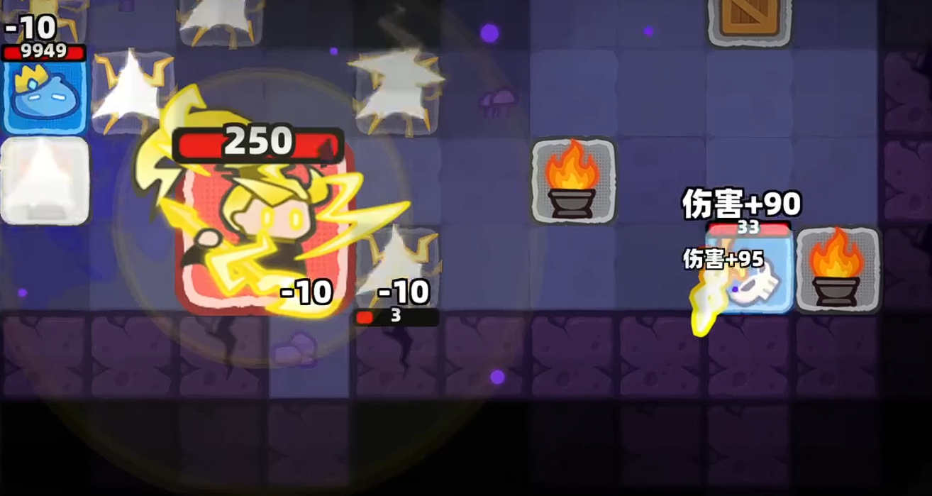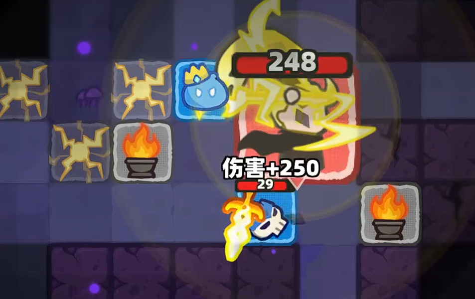 开局阶段,Boss尚未激活远程技能,主要采用贴身挥砍攻击。此时无需频繁位移,推荐静止于带火炬标识的格子上——此类地形提供全视角视野,可清晰预判Boss转向与起手动作,大幅降低被背身连击的风险。持续普攻可逐步叠加角色基础战力,实现稳定压血。