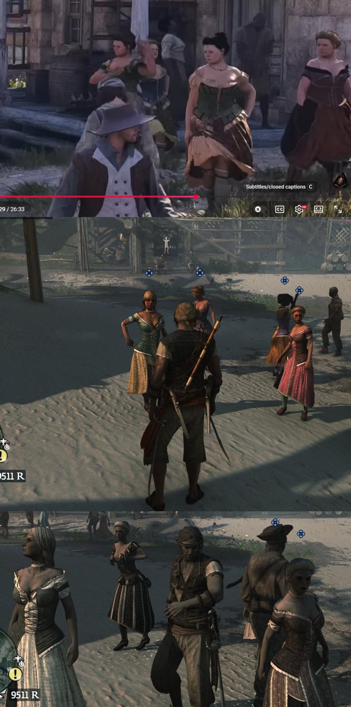 首先,育碧似乎偷偷将原作中的一些妓女角色换成了更胖更丑的角色,引发了玩家的不满。考虑到该作的背景是18世纪的加勒比海以及当时的经济条件和审美,肥胖的妓女显得太突兀: