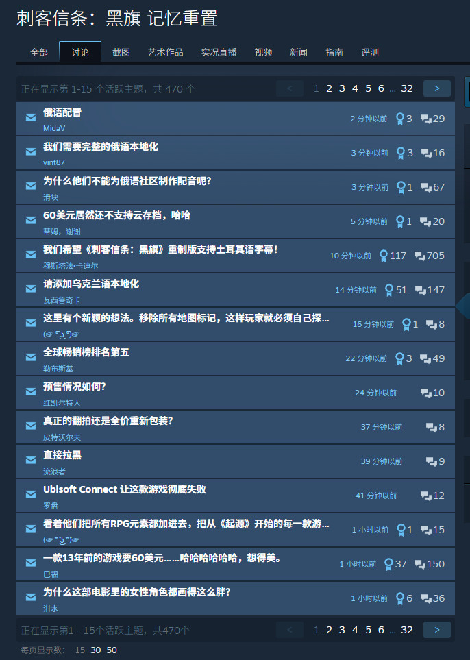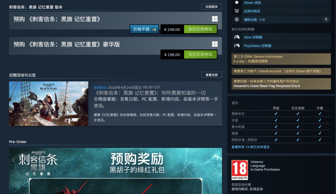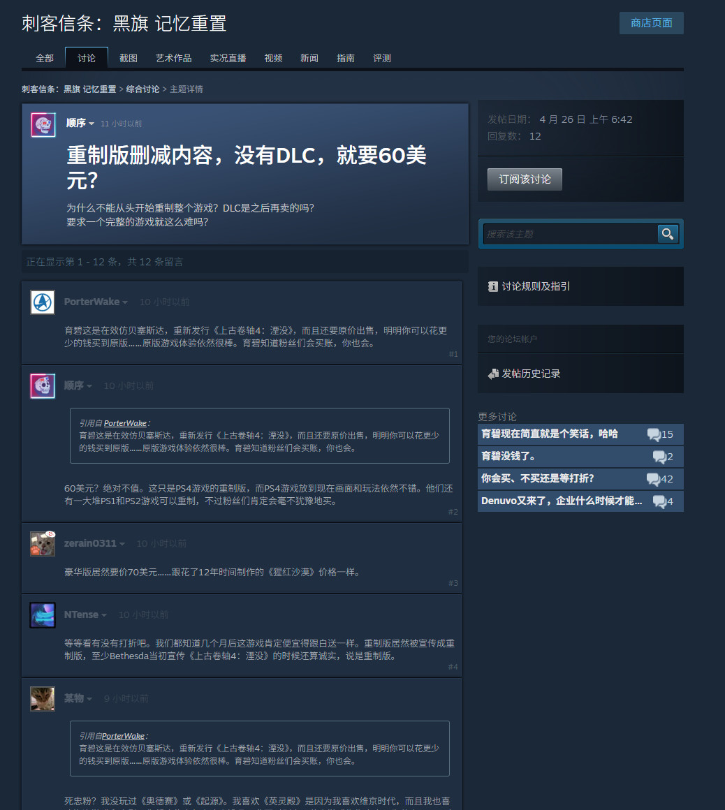 《刺客信条:黑旗 记忆重置》公布后,Steam社区一些玩家对该作的三个地方进行了吐槽。
