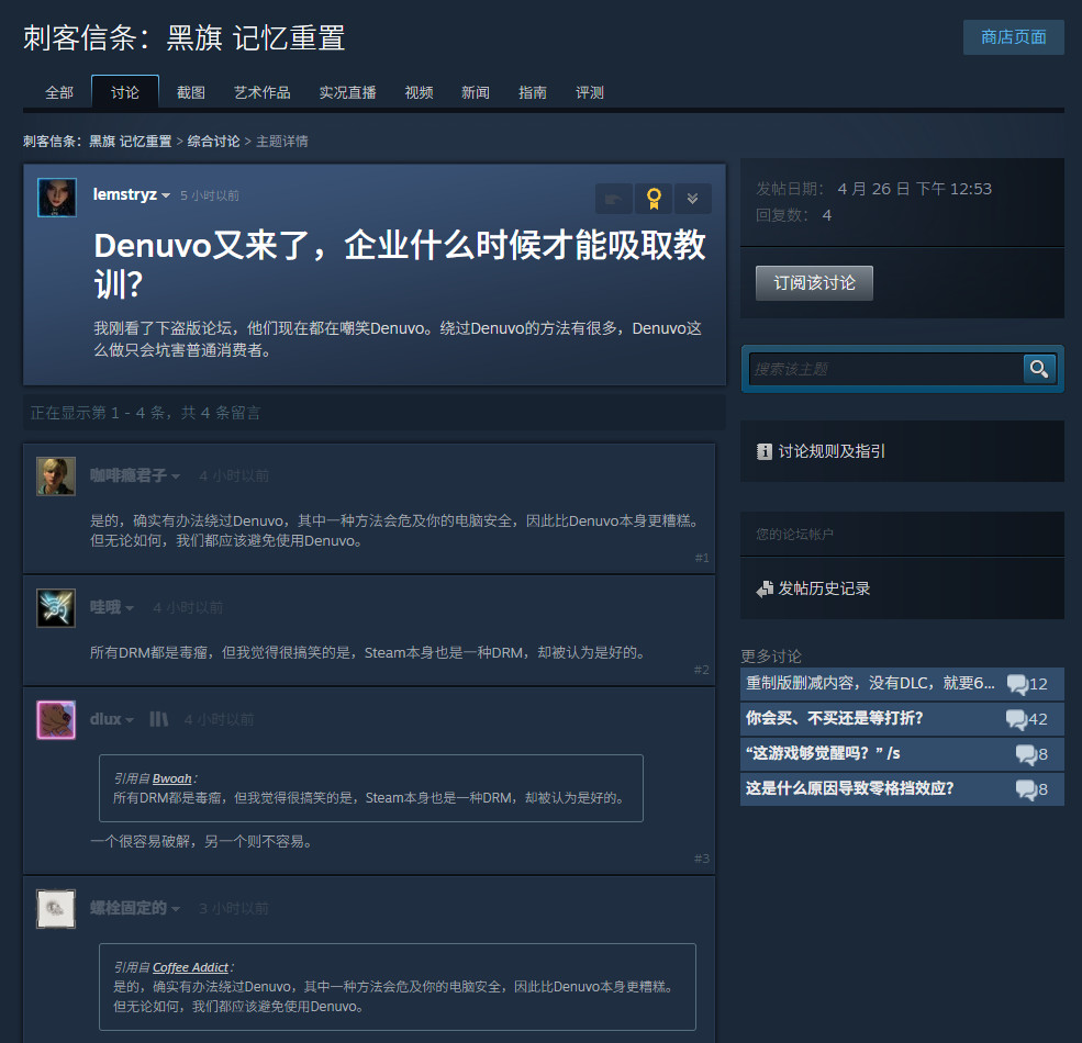 Steam页面确认游戏采用了D加密