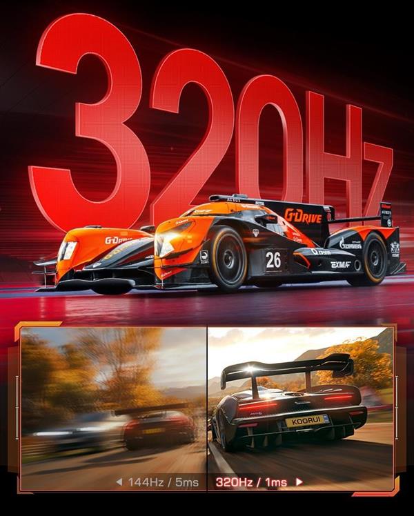 除此之外,这块屏幕搭载320Hz超高刷新率,综合竞技体验再度跃升。对比市面常见240Hz显示器,更高的画面刷新上限,能带来更顺滑的动态视觉表现。高速跟枪、快速拉枪、连续转身等高频操作下,画面过渡连贯自然,有效弱化动态模糊与残影问题。配合毫秒级响应素质,操作指令同步输出,大幅缩小视觉延迟,完美适配高强度竞技对抗。