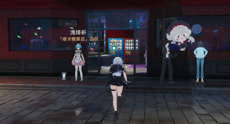 离开唱片店后,请优先留意店门口右侧的2—FOUR MART便利店。其门前伫立一名戴帽路人,与其交谈可触发首段有效情报,并自动更新任务指引——前往噗卡糖果屋。建议同步启用游戏内导航功能,避免在街区中无序穿行,节省探索时间。