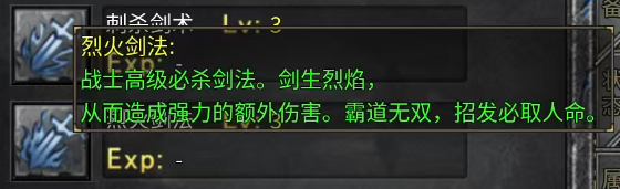 那么第三个就是烈火剑法,这个技能相对来说的话,是属于更高级的剑法效果,而且带有一定的必杀功能,在其中剑法输出的时候,周边还会地带有烈焰的持续输出伤害,也就是说可以造成更多的额外伤害效果,在其中如果想要更多的连续攻击效果的话,中间就可以用到这个烈火剑法,而在战士这个职业搭配各种嗜血攻击的时候,初期大家用的最多的就是这个烈火剑法。