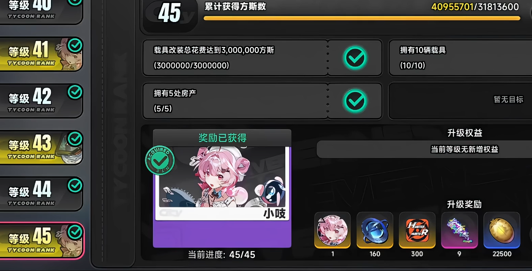 值得一提的是,当都市大亨等级达到18级时,将开启小吱的专属剧情任务链。该任务为纯流程向引导型内容,无难度门槛,完成后立即获得小吱角色。此举不仅丰富了角色阵容,也为后续21级冲刺提供额外经验加成与资源支持。