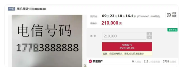 888888靓号将被法拍!过户需预存5万元 起拍价21万元无人报名