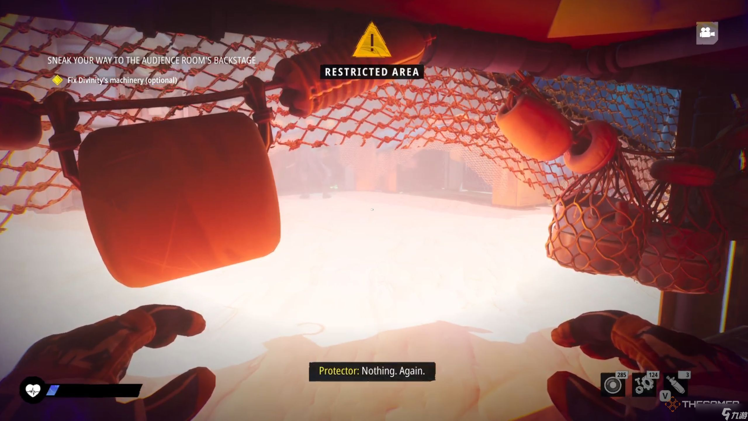 反之,如果你选择了一位未能说服神秘主义者的搭档,你就必须潜行寻找伪装成神秘主义者的 Nahe。无论哪种情况,你最终都会进入禁区。Nahe 会要求你修复“神性机械”(如果你的搭档弄坏了它的话),即使搭档没弄坏,她也会提到这一点。