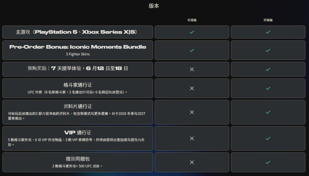 标准版:售价69.99美元,包含游戏本体及预购特典“经典性时刻同捆包”,内含三款独家格斗家皮肤。