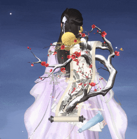 本次天工锦匣·绘芳的背饰含【墨染梅·丹霞】、【墨染梅·金晖】两种偏色。寒枝载雪,红梅入卷。本次背饰以雪中梅与古卷为灵感,枝桠带着落雪的清冽,红梅与黄梅缀着墨香点点,书卷展开的弧度藏着江湖的诗意。以墨为骨,以花为魂,持此绘芳饰,踏雪入江湖,步步皆成景,举手皆风华。