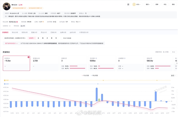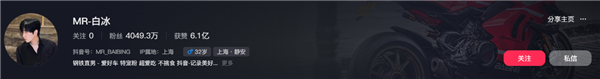 截稿前,白冰在抖音拥有4049.3万粉丝。