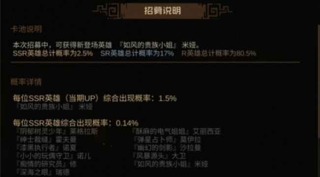 游戏内基础卡池中,SSR角色抽取概率为2.5%,SR为17%,R为80.5%。该分布符合主流卡牌产品的设计惯例。但需特别注意UP卡池的叠加规则:当期UP角色在SSR层级中的实际综合出货率为0.14%,即每千次抽卡理论期望值约为1.4个目标角色。这意味着即便达成SSR保底,也不等同于锁定UP角色。