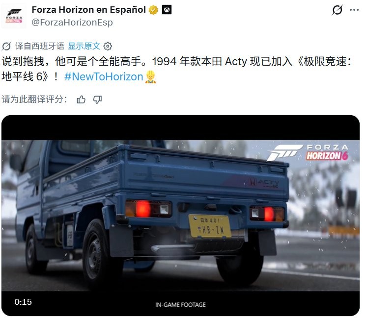 在《极限竞速》系列官方社交媒体账号上,工作室发布了一段氛围感十足的宣传视频,展示了这辆新车。官方配文写道:“说到运货,它到哪里都能搞定。”玩家们对这一消息反响热烈,纷纷留言请求开发团队加入更多来自斯巴鲁和铃木的小型卡车。工作室代表回应称,可以在官方论坛上提交具体的车辆需求。
