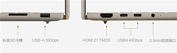 接口方面配备双USB4、USB-A、HDMI 2.1 TMDS、标准SD卡槽等全套高速接口,不用转接器就能连接外设,拓展性拉满。