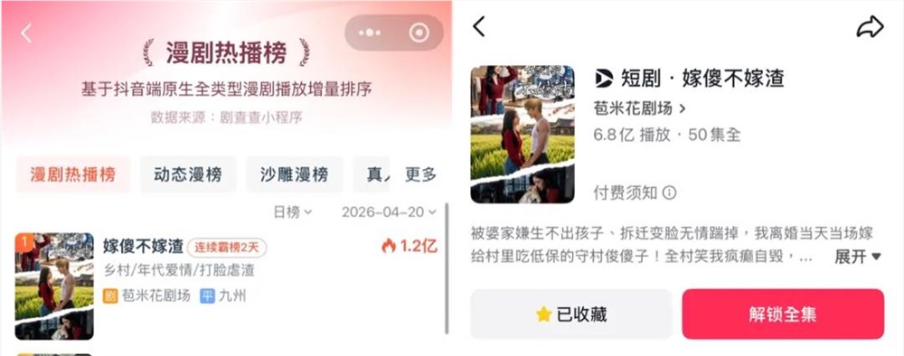 那么,这部从剧名到画风、剧情都充满土味的短剧,是如何拿下抖音6亿播放量的?除此之外,还有哪些乡村题材短剧走红?这反映了短剧市场怎样的格局变化?