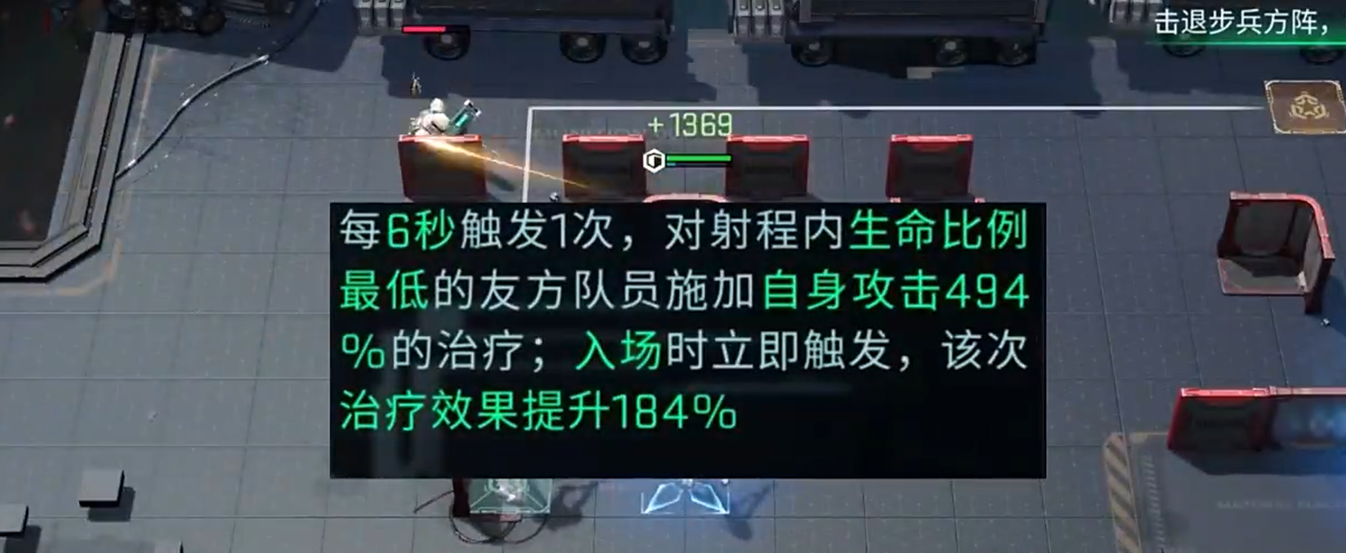 实战应用中,卡莉莎在高难度副本表现尤为突出。其治疗覆盖半径为8格,虽数值上不属最大范围,但通过合理站位(推荐置于队伍中心或前排后方1-2格),可稳定覆盖3至4名核心单位。需特别注意:若将其部署于阵型边缘,将导致“一致战线模组”无法激活共鸣,同时支援导弹亦无法触发,直接削弱团队输出与续航双维度。养成优先级明确:战术专精为第一资源投入方向,因其同步提升治疗基数与能量回复效率,专精等级提升后,大招自动触发间隔由8秒缩短至6秒,属于质变节点;武器等级保持同步提升即可,无需强求极限突破,资源应优先保障核心技能等级达标。