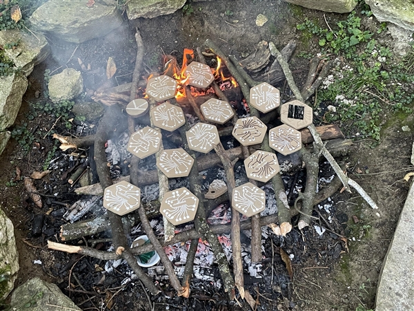 与商业瓷土和高温窑炉不同,团队向一位陶艺工匠学习了露天柴火烧制黏土的史前技法,经过两天实践掌握了从就地取土到烧制成型的流程。