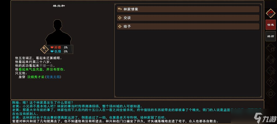(6)前往 扬州城→民宅(林府对面)→[人物:林兴和]对话 选择:“林兄弟,我已经……”。