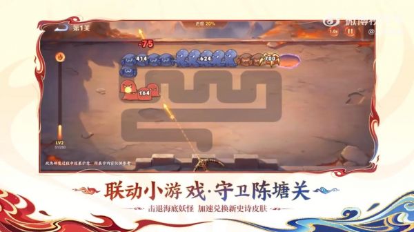 据悉,此次联动活动还会带来联动小游戏《守卫陈塘关》(视频画面显示,小游戏采用类似《保卫萝卜》的塔防玩法),宣称可以加速兑换新史诗皮肤(具体皮肤未说明)。