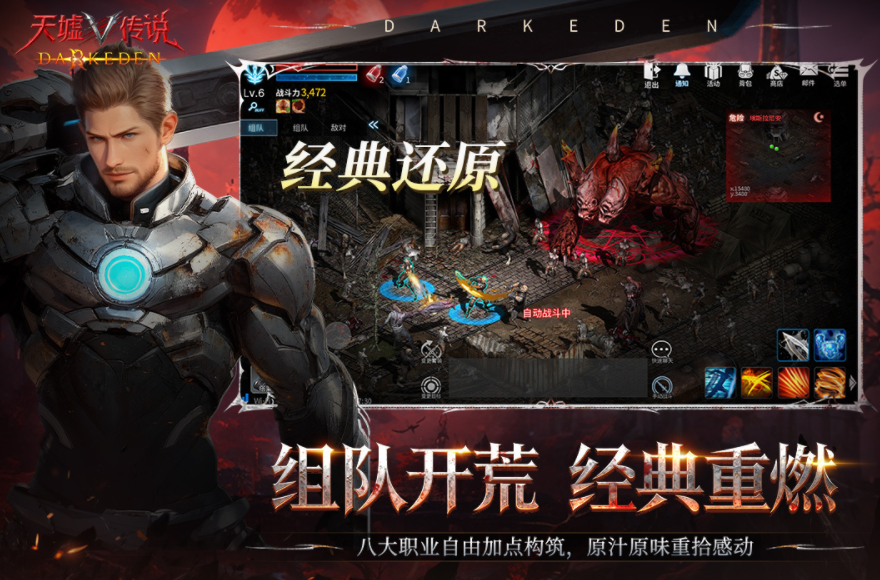 天墟传说设置了一个暗黑末日场景,面对即将走向末日灭亡的状况,玩家可以和血族开启对抗,正式挑战过程中会设置八种职业,成员可以去选择自己喜欢的职业,通过不同的技能爆发,打出高额输出伤害,挑战过程中支持pvp竞技,通过成员之间的互相对抗展现能力,后期会开启pve玩法,可以进入到大世界中开启首领讨伐,暗黑的地下场景,会设置不同的迷宫结构,在对战之余,玩家要去探索每个角落,收集场景里的随机宝箱,提升角色能力。