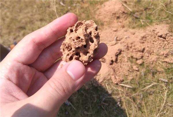 红火蚁巢内部蜂窝状结构。冉浩摄